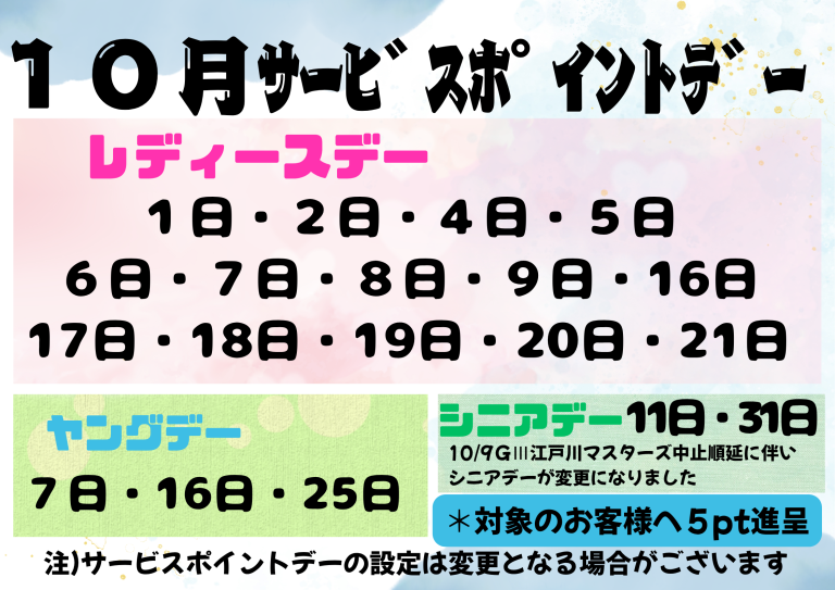 ☆サービスポイントデーの設定は変更となる場合がございます☆