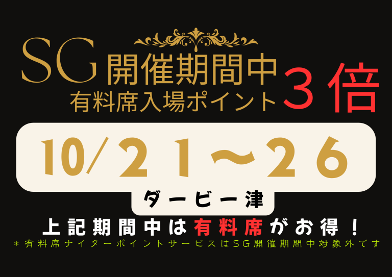 有料席ナイターポイントサービスは、SG開催期間中対象外とさせていただきます
