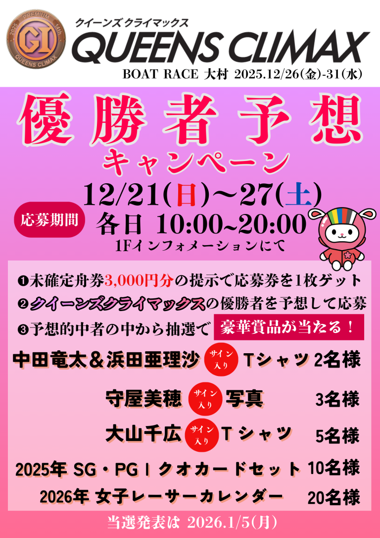 12/21~12/27 クイーンズクライマックス優勝者予想キャンペーンを開催!