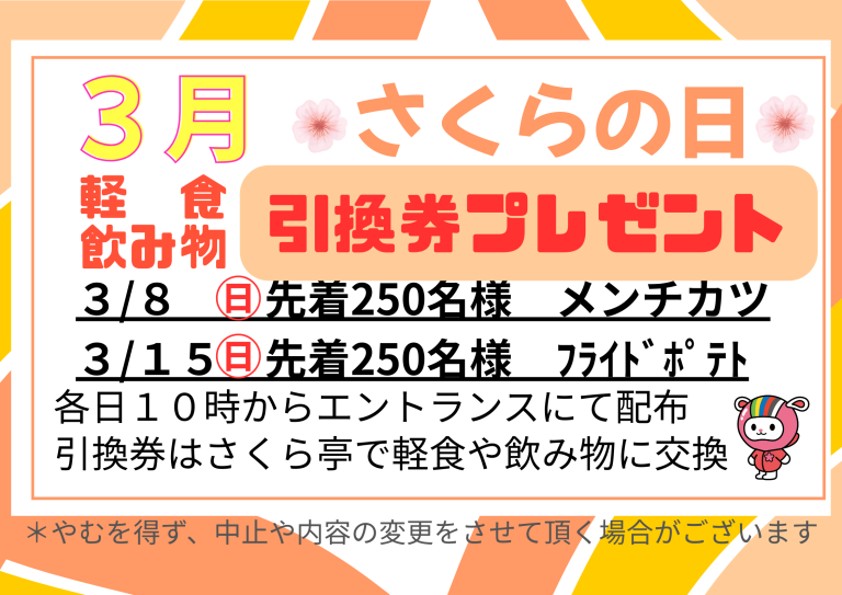 さくらの日 軽食や飲み物引換券プレゼント!