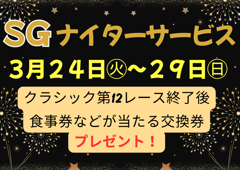 3/24㊋~29㊐ クラシック開催中は毎日SGナイターサービス!